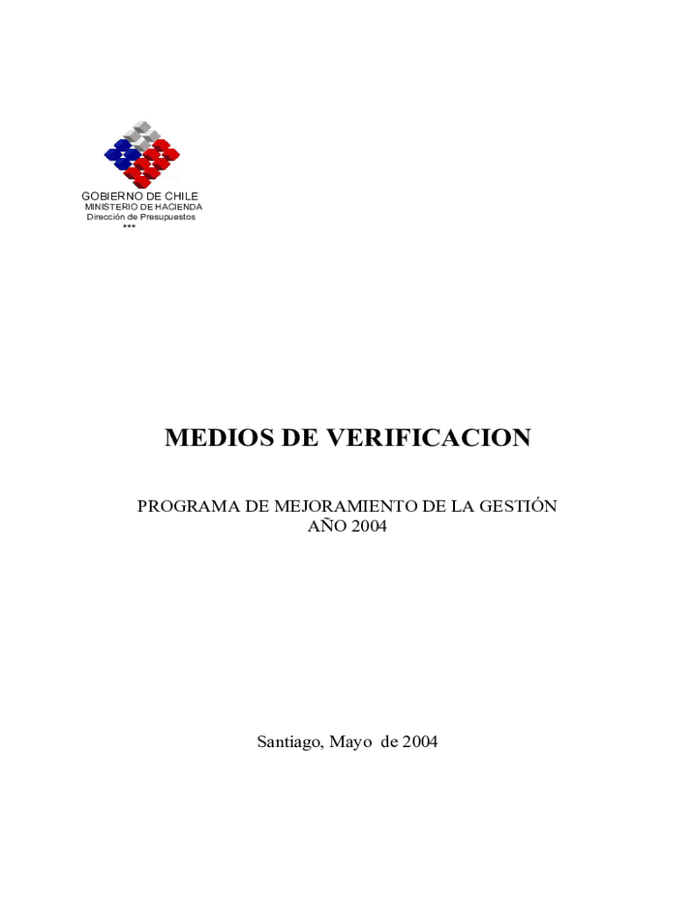 GOVERNOR DE CHILE MINISTER DE HACIENDA Direction de Presupuestos***MEDICS DE VERIFICATION PROGRAM DE MEJORAMIENTO DE LA GETTING AO 2004Santiago, Mayo de 2004Medios de Verification. Program de Mejoramiento