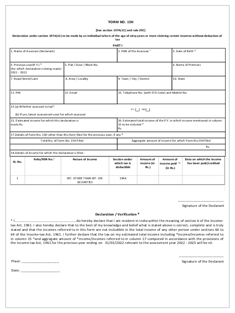 By submitting Form 15H, these individuals can declare that they are eligible for non-deduction of tax at source (TDS) on certain incomes and avoid unnecessary tax deductions.