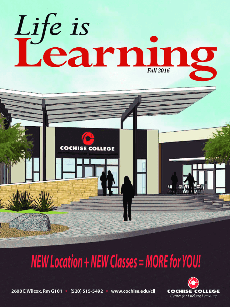 Fall 2016NEW Location + NEW Classes MORE for YOU! 2600 E Wilcox, Rm G101 w (520) 5155492 w www.cochise.edu/clla C t l. o a . G s. S t an f e o h r T v e W Entertaining for Everyone, page 9 with Chef