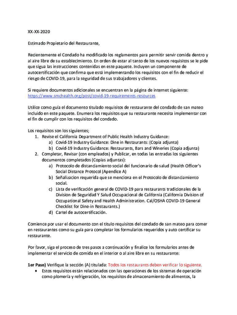 XXXX2020 Estimate Proprietary Del Restaurant, Recientemente el Condado ha modified Los regiments para permit server coming entry y all are Libra de SU establecimiento. En order DE star all tango de