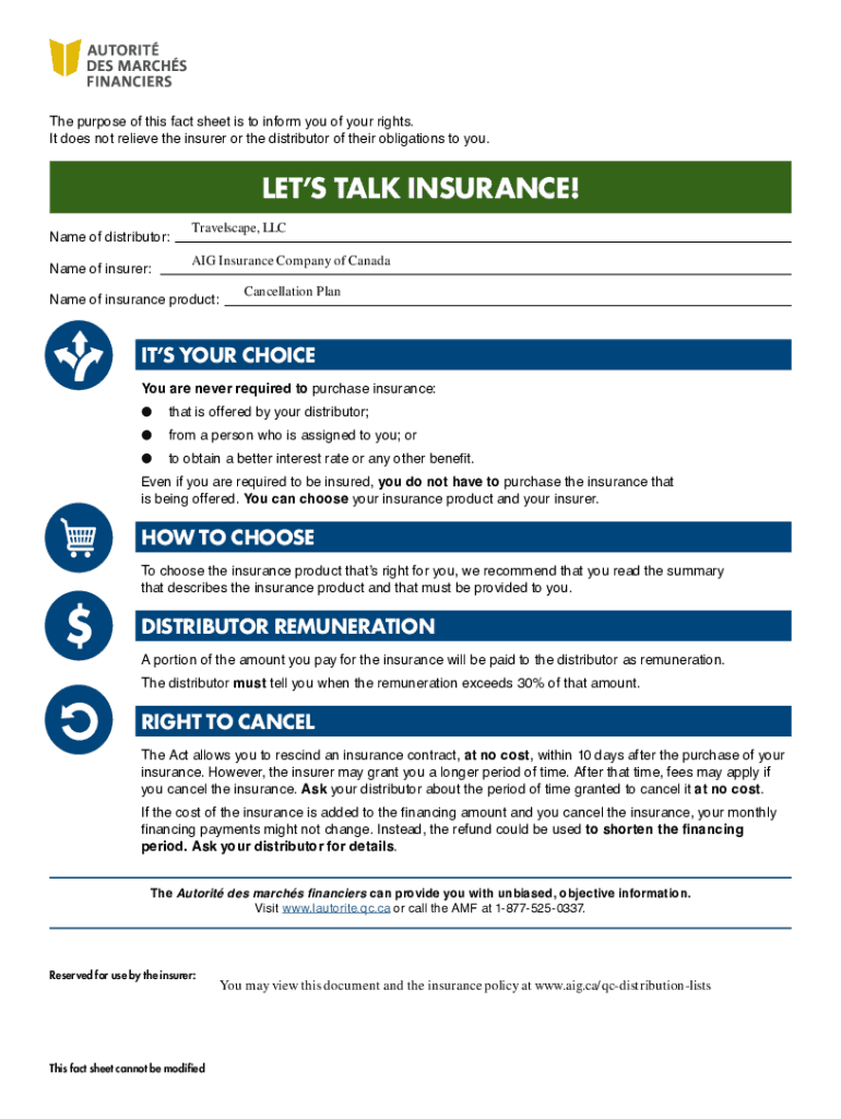 The purpose of this fact sheet is to inform you of your rights. It does not relieve the insurer or the distributor of their obligations to you. LETS's TALK INSURANCE! Name of distributor: Name of