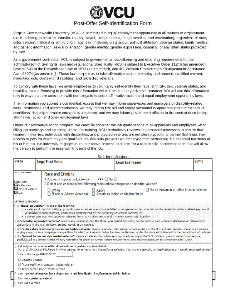 How should you fill out the Post Offer Self Identification - hr vcu template