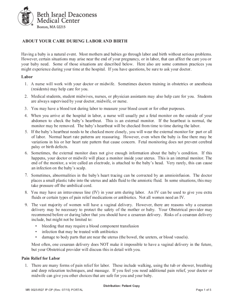 ABOUT YOUR CARE DURING LABOR AND BIRTH Having a baby is a natural event. Most mothers and babies go through labor and birth without serious problems. However, certain situations may arise near the