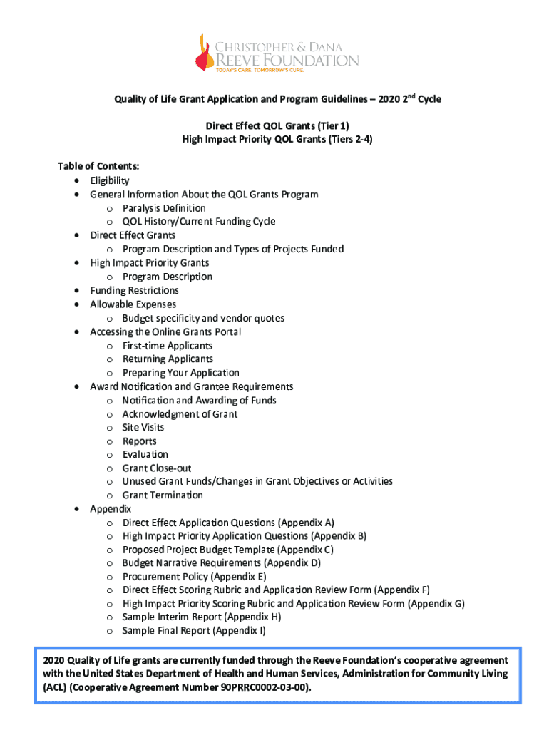 Get the free Quality of Life grant application process - Reeve Foundation