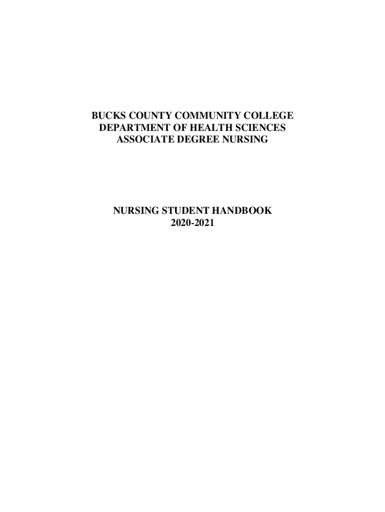 BUCKS COUNTY COMMUNITY COLLEGE DEPARTMENT OF HEALTH SCIENCES ASSOCIATE DEGREE NURSINGNURSING STUDENT HANDBOOK 20202021The Nursing Student understands that the CCC Associate Degree Nursing Program