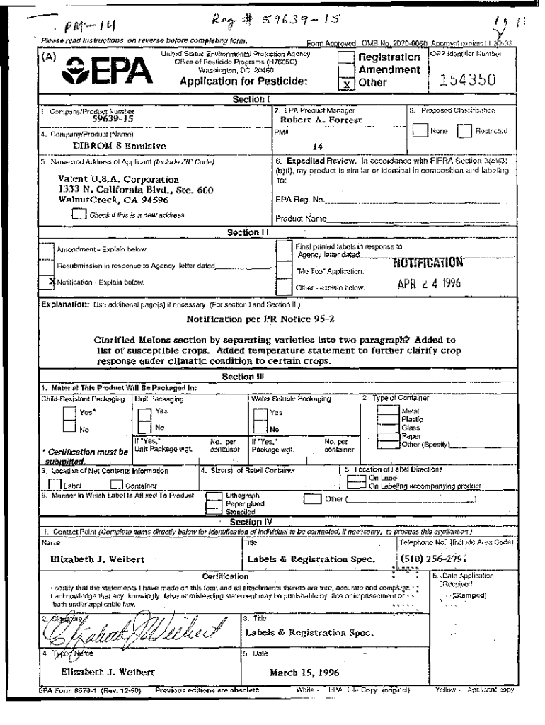 , Please cold Instructlol1s on reverse before completing form(A)a Form Approved. OMB No. 20700000. RegistrationUnited States Environmental Protection Agency Off.o of Pesticide Programs (H750SC) Washington,