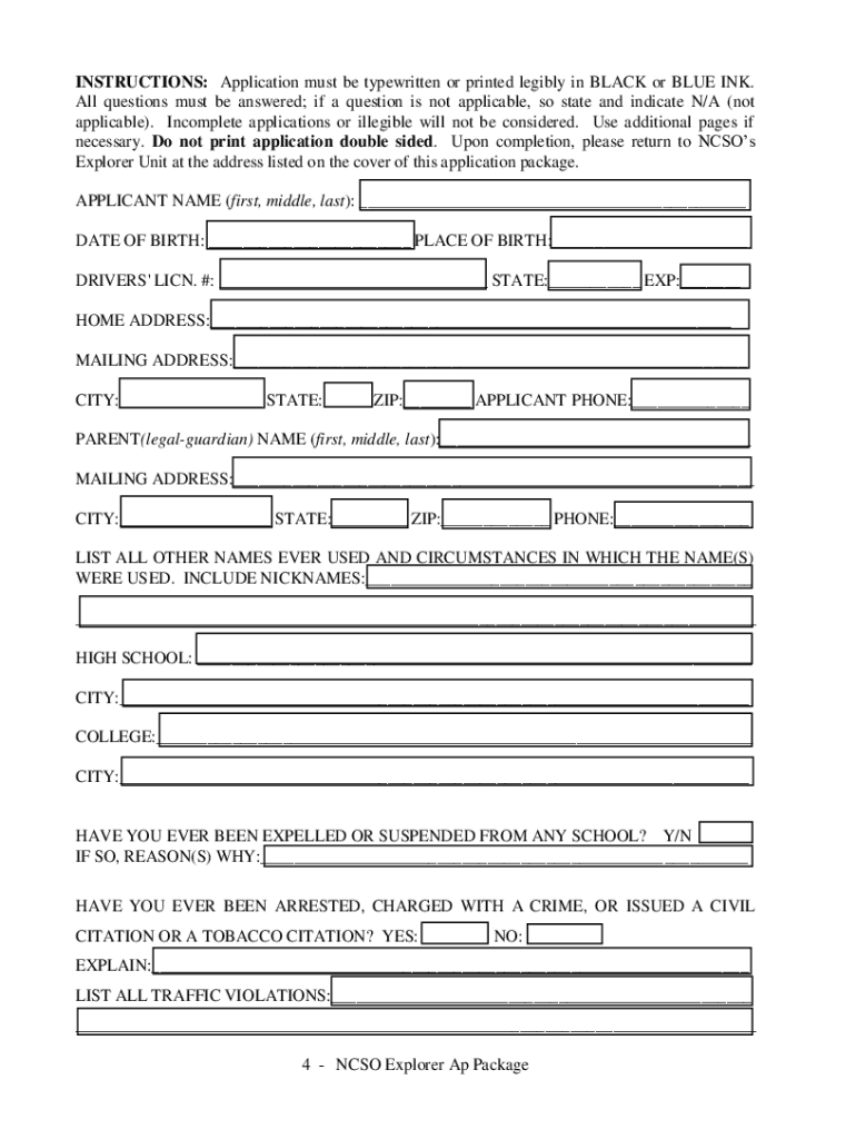 Law Enforcement Explorer Application Package DO NOT PRINT DOUBLE SIDED Nassau County Sheriffs Office 77151 Citizens Circle Yule, Florida 32097 9042250331 Human Resources 90454840121 NCO Explorer AP