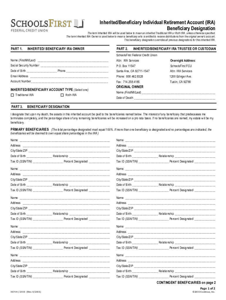 Inherited/Beneficiary Individual Retirement Account (IRA) Beneficiary Designation term Inherited IRA will be used below to mean an inherited Traditional IRA or Roth IRA, unless otherwise specified.