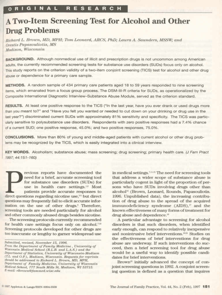 Get the free A Two-Item Screening Test for Alcohol and Other ... - MDedge