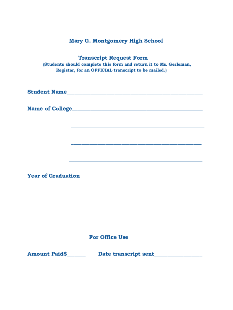 Get the free images.pcmac.orgSiSFilesSchoolsMary G. Montgomery High School Transcript Request Form