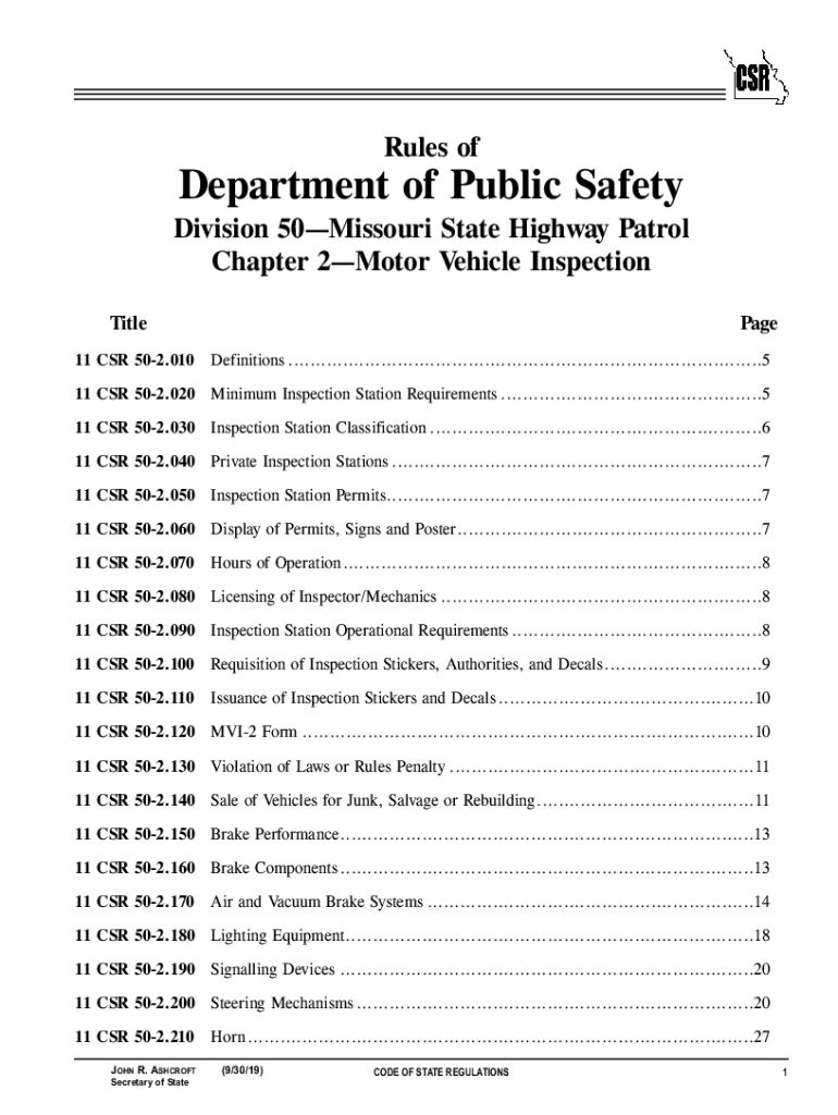 Rules department of Public Safety Division 50Missouri State Highway Patrol Chapter 2Motor Vehicle Inspection Title 11 CSR 502.010Page Definitions .......................................................................................511