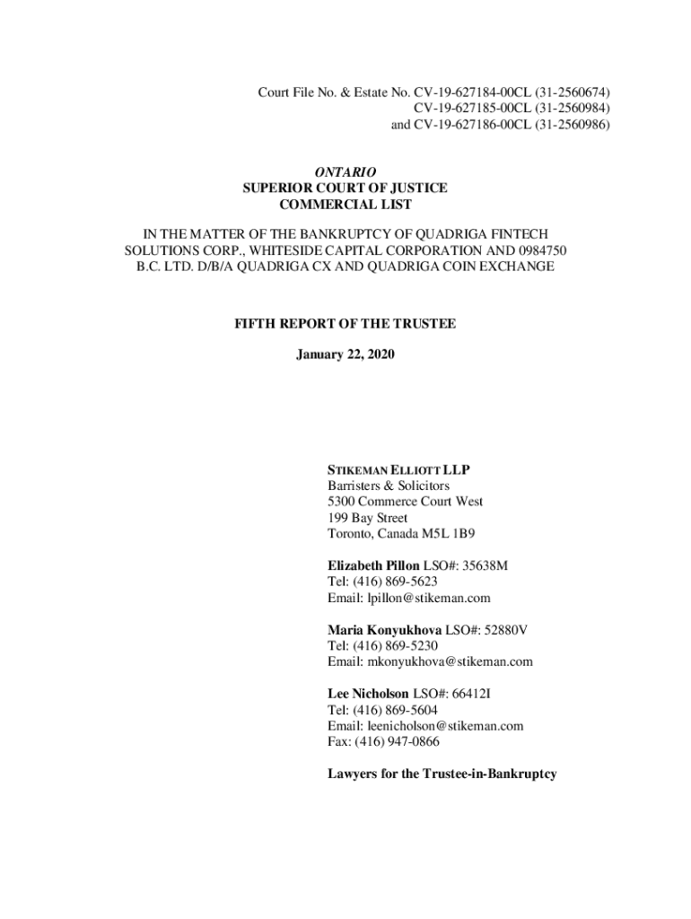 Court File No. & Estate No. CV1962718400CL (312560674) CV1962718500CL (312560984) and CV1962718600CL (312560986)ONTARIO SUPERIOR COURT OF JUSTICE COMMERCIAL LIST IN THE MATTER OF THE BANKRUPTCY OF