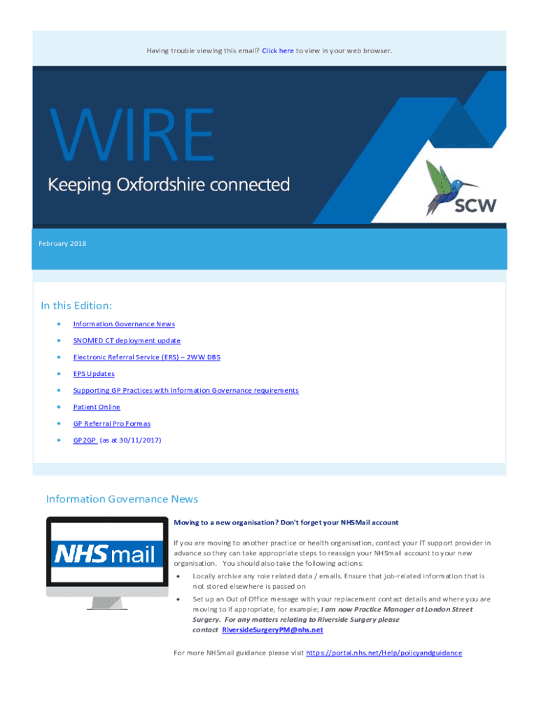 Having trouble viewing this email? Click here to view in your web browser. February 2018In this Edition: Information Governance Newswomen CT deployment updateElectronic Referral Service (ERS) 2WW