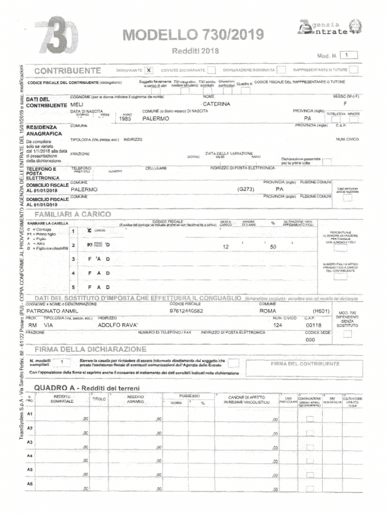. Model 730/2019× g né NZ i at rat Reddit 2018DELLEENTRATEDEL 15/01/2019e such. M odificazioniU o d.CONTRIBUENTEXDICHIARANTEC O NIG E D IC H IA R A N TE Suggests fiscalmente 730 a calico DI Altai