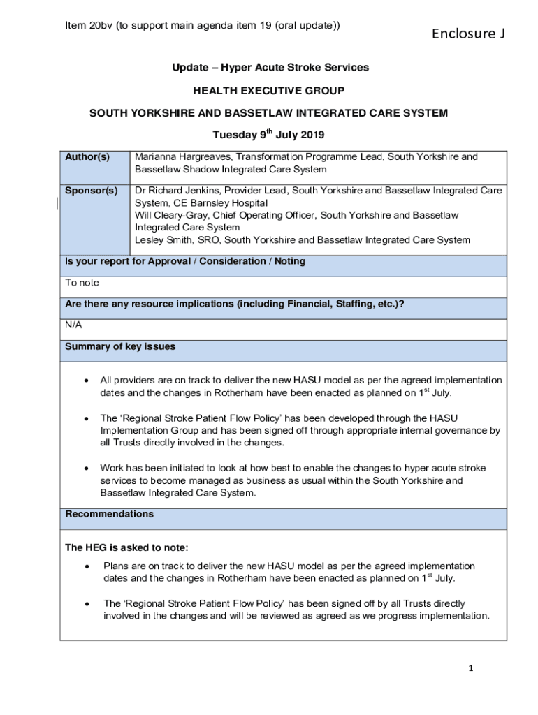 Get the free Update Hyper Acute Stroke Services HEALTH EXECUTIVE GROUP ...