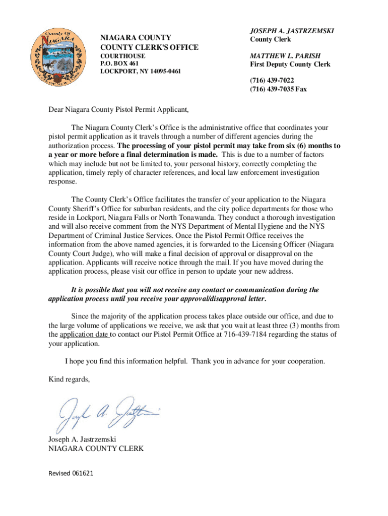 NIAGARA COUNTY CLERK\'S OFFICE COURTHOUSE P.O. BOX 461 ROCKPORT, NY 140950461JOSEPH A. JASTRZEMSKI County Clerk MATTHEW L. PARISH First Deputy County Clerk (716) 4397022 (716) 4397035 Fanfare Niagara