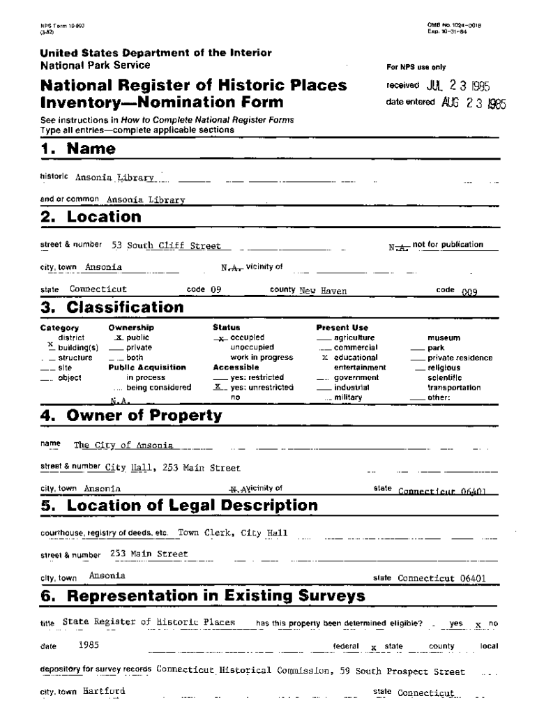 OMB No. 10240018 Exp. 103184NPS Form 10900 (382)United States Department of the Interior National Park ServiceNow NPS use onlyNational Register of Historic Places Inventory Nomination Form received