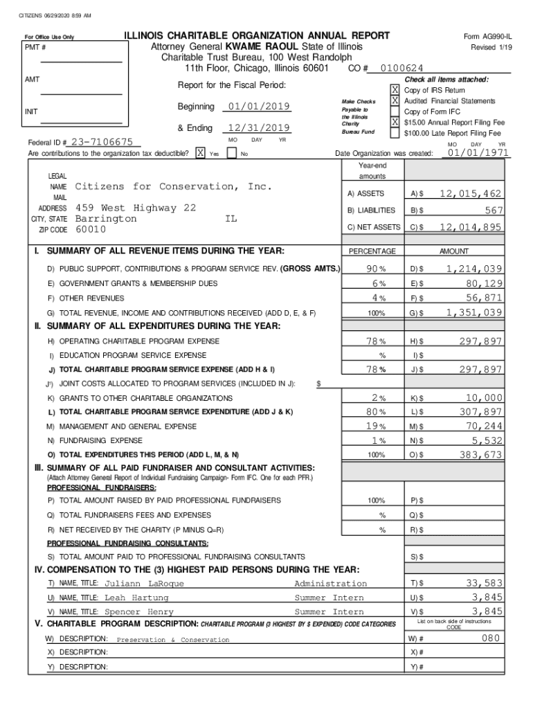 CITIZENS 06/29/2020 8:59 ILLINOIS CHARITABLE ORGANIZATION ANNUAL REPORT Attorney General KWAME RAOUL State of Illinois Charitable Trust Bureau, 100 West Randolph 11th Floor, Chicago, Illinois 60601