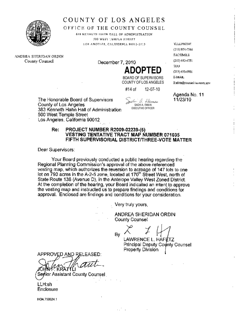 COUNTY OF LOS ANGELES OFFICE OF THE COUNTY COUNSEL 648 KENNETH HAHN HALL OF ADMINISTRATION 500 WEST TEMPLE STREET LOS ANGELES, CALIFORNIA 900 i 22713TELEPHONE (213) 9747546 FACSIMILEANDREA SHERIDAN