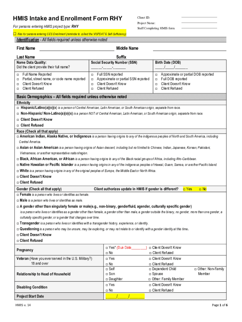 How to fill out hmis intake and enrollment