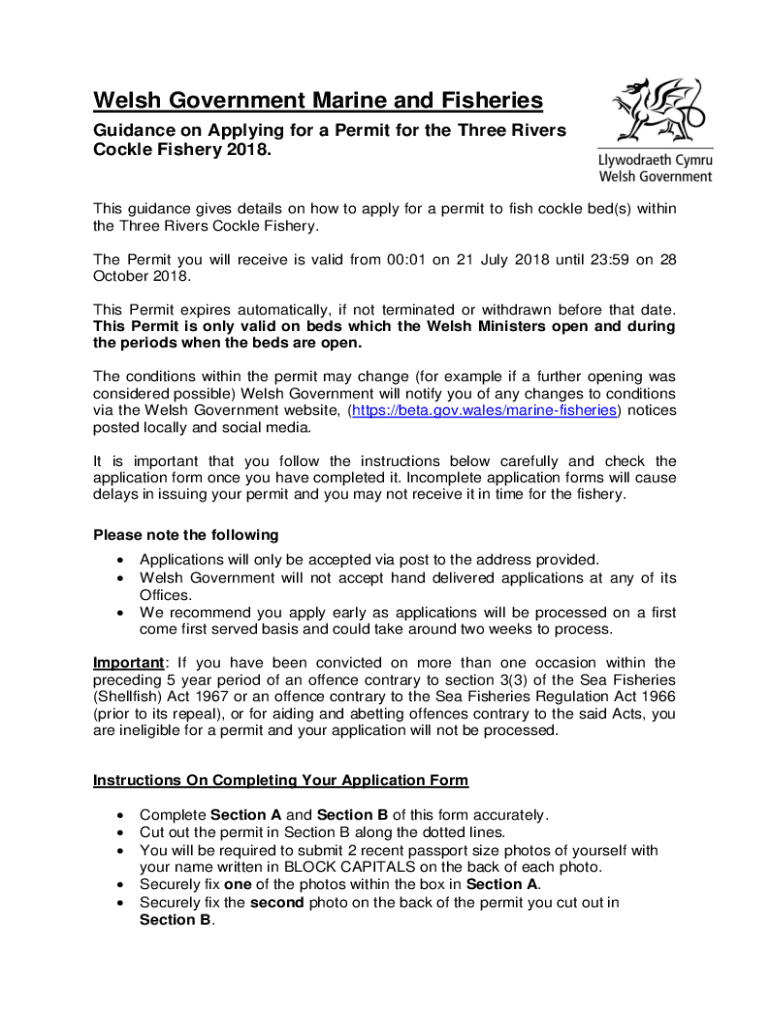 Welsh Government Marine and Fisheries Guidance on Applying for a Permit for the Three Rivers Cockle Fishery 2018. This guidance gives details on how to apply for a permit to fish cockle bed(s) within