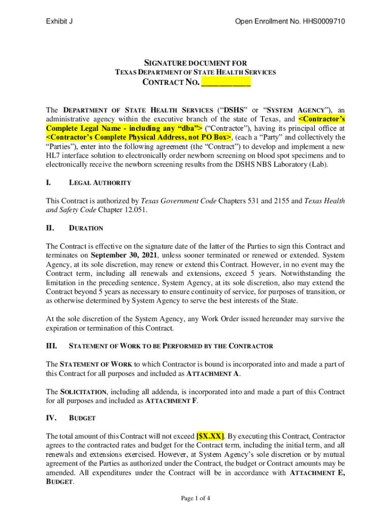 Exhibit Open Enrollment No. HHS0009710SIGNATURE DOCUMENT FOR TEXAS DEPARTMENT OF STATE HEALTH SERVICESCONTRACT NO. The DEPARTMENT OF STATE HEALTH SERVICES (DSS or SYSTEM AGENCY), an administrative