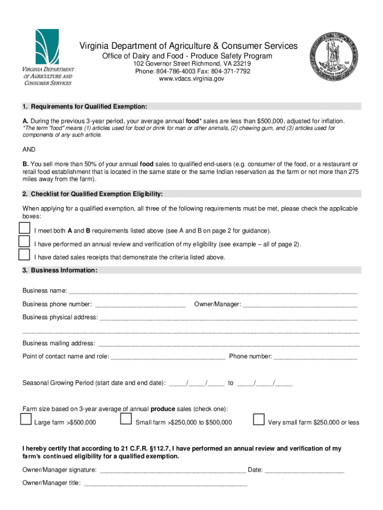 Small-scale agricultural producers who meet specific criteria established by VDACS are required to file the Handbook.