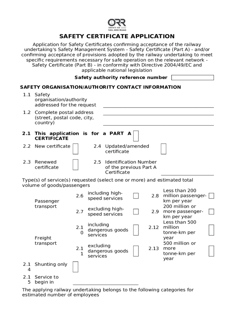 What is ODF Safety certificate application - Office of Rail and Road Form?