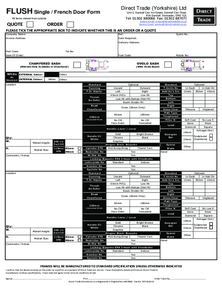 Direct Trade (Yorkshire) Flush Single / French Door Community 3, Randall Carr Ind Estate, Randall Carr Road, Kirk Randall, Don caster, DN3 1QLTel: 01302 880066 Fax: 01302 887070All items viewed from