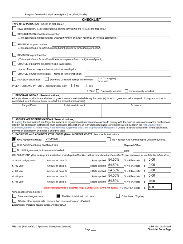 Get the free PHS 398 (Rev. 08/12), OMB No. 0925-0001, Checklist Form Page - dsp research uiowa