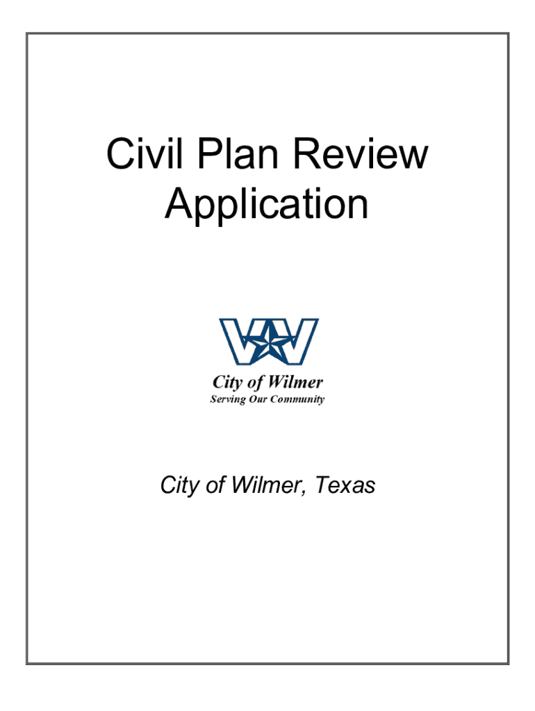 Civil Plan Review ApplicationCity of Wilmer, TexasDevelopment Department 972.441.6373City of Wilmer 128 N. Dallas Ave Wilmer, Texas 75172CITY OF WILMER APPLICATION CIVIL PLAN REVIEWApplication Type/Project