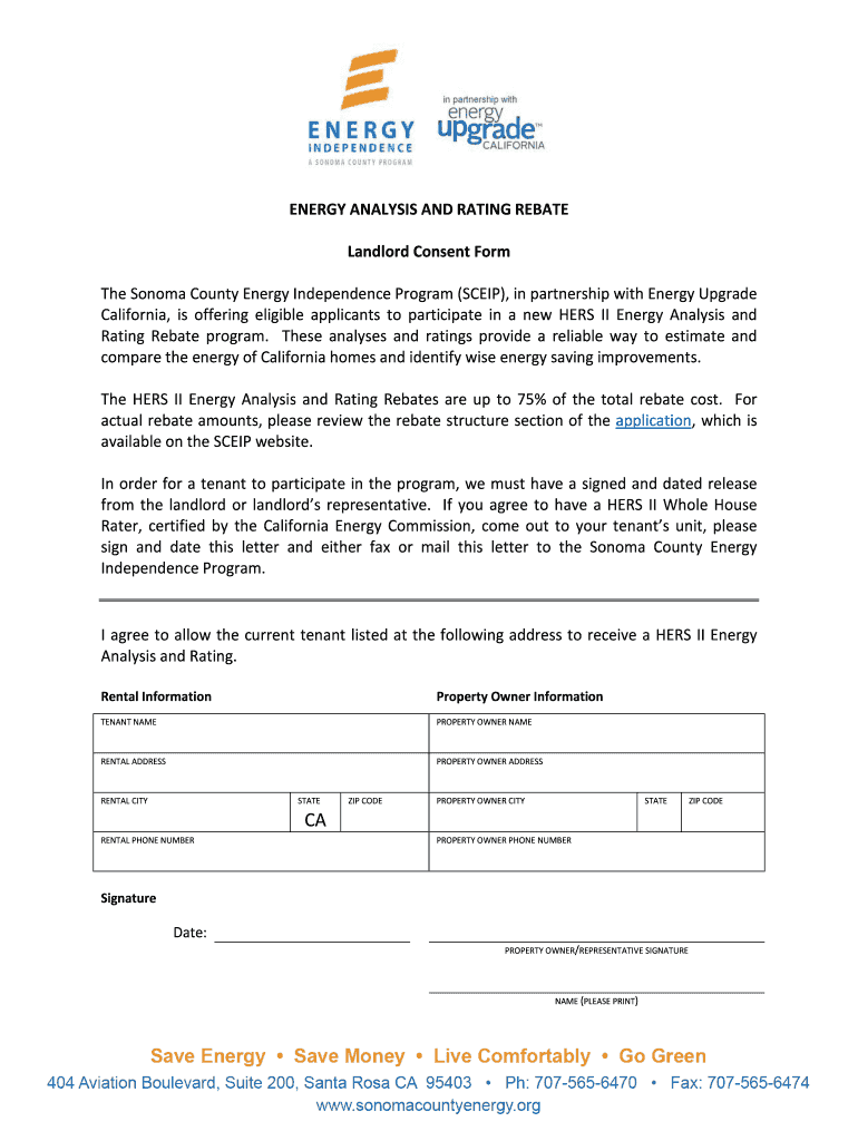 Property owners in California whose tenants wish to participate in energy initiatives such as the Sonoma County Energy Independence Program are eligible to fill out this form.