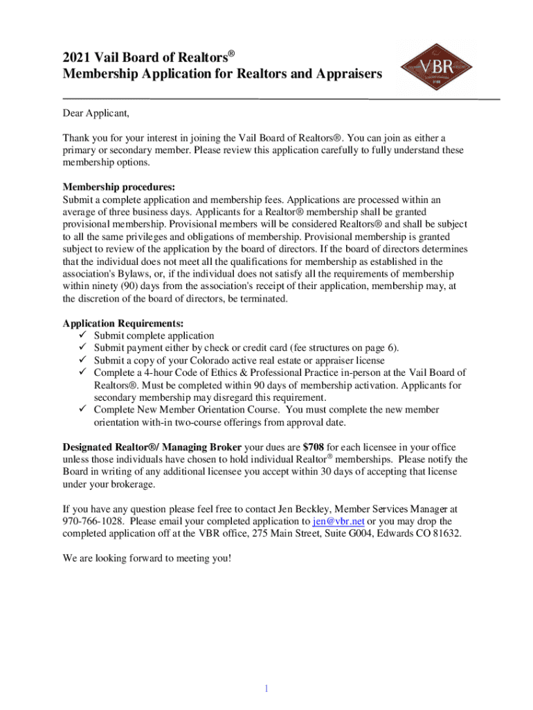 2021 View Board of Realtors Membership Application for Realtors and Appraisers Dear Applicant, Thank you for your interest in joining the View Board of Realtors. You can join as either a primary or
