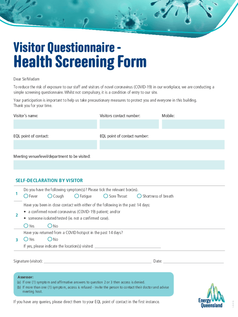 Visitors to a particular establishment or organization usually need to undergo the visitor questionnaire health screening.