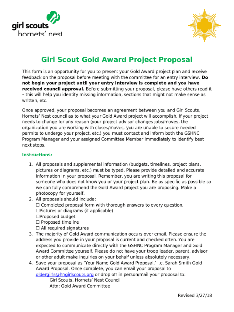 Instructions for the form How to Submit a Successful Girl Scout Gold Award Proposal ...