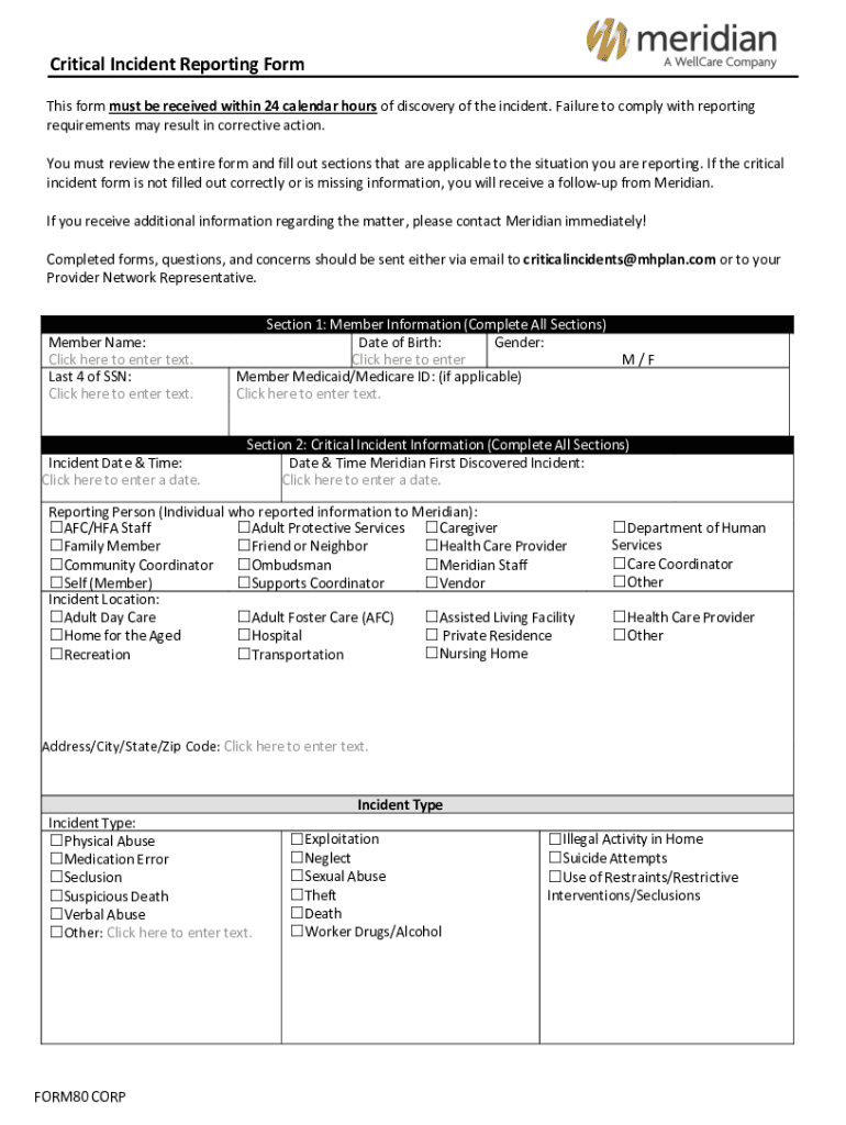 Critical Incident Reporting Form This form must be received within 24 calendar hours of discovery of the incident. Failure to comply with reporting requirements may result in corrective action. You