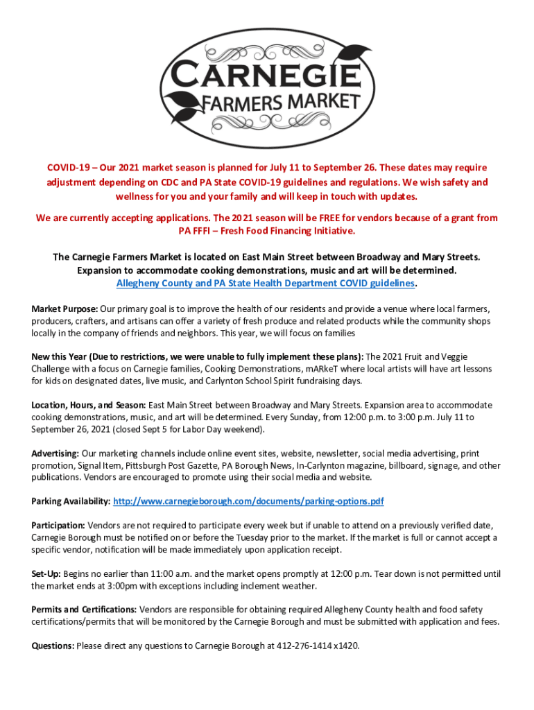 Get the free Our 2021 market season is planned ... - carnegieborough.com
