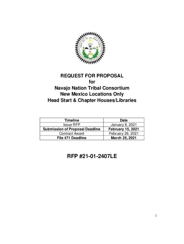 REQUEST FOR PROPOSAL for Navajo Nation Tribal Consortium New Mexico Locations Only Head Start & Chapter Houses/LibrariesTimeline Issue RFP Submission of Proposal Deadline Contract Award File 471 Delineate