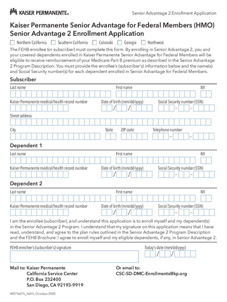 Group Plan Kaiser Permanent Senior Advantage (HMO)Enrollment form Northwest Region Group Plan Filling out and returning the enrollment form is your first step to becoming a Kaiser Permanent Senior