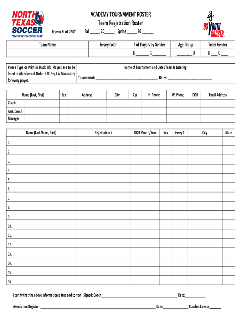 Get the free ACADEMY TOURNAMENT ROSTER Team Registration Roster
