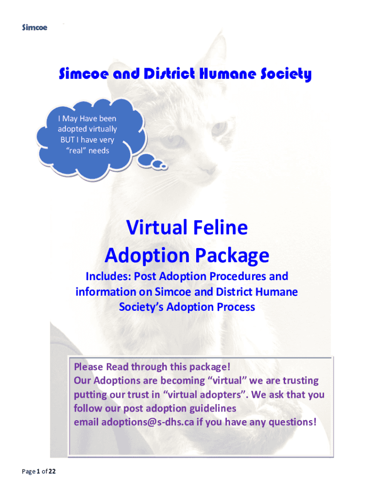 Since and District Humane SocietySimcoe and District Humane Society I May Have been adopted virtually BUT I have very real needsVirtual Feline Adoption Package Includes: Post Adoption Procedures and