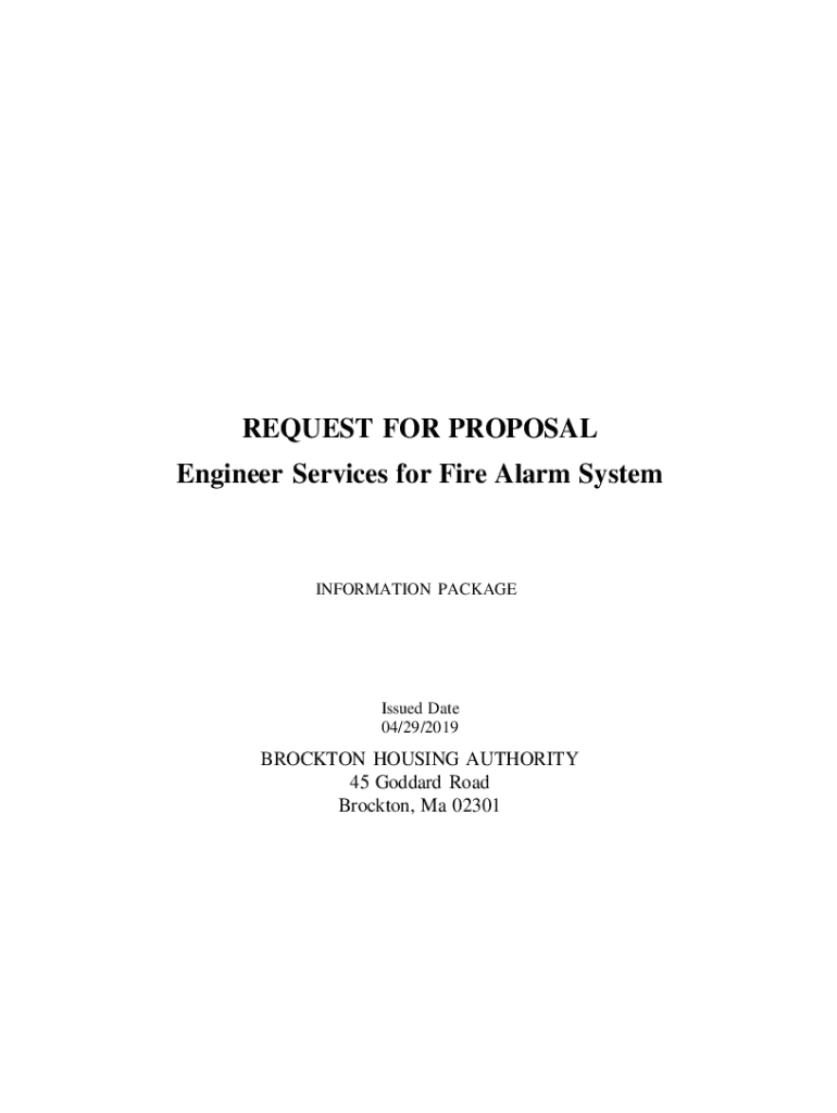 REQUEST FOR PROPOSAL Engineer Services for Fire Alarm SystemINFORMATION PACKAGEIssued Date 04/29/2019BROCKTON HOUSING AUTHORITY 45 Goddard Road Brockton, Ma 02301REQUEST FOR PROPOSALS The Brockton