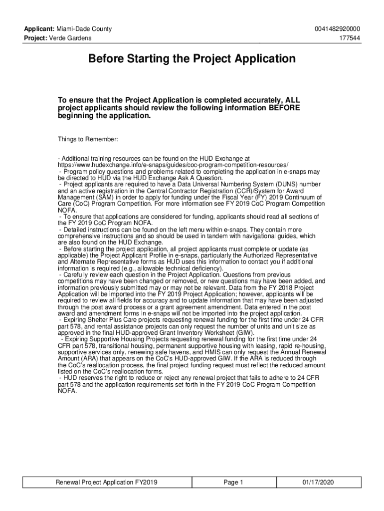 Applicant: Miami-Dade County Project: Verde Gardens0041482920000 177544Before Starting the Project Application ensure that the Project Application is completed accurately, ALL project applicants should