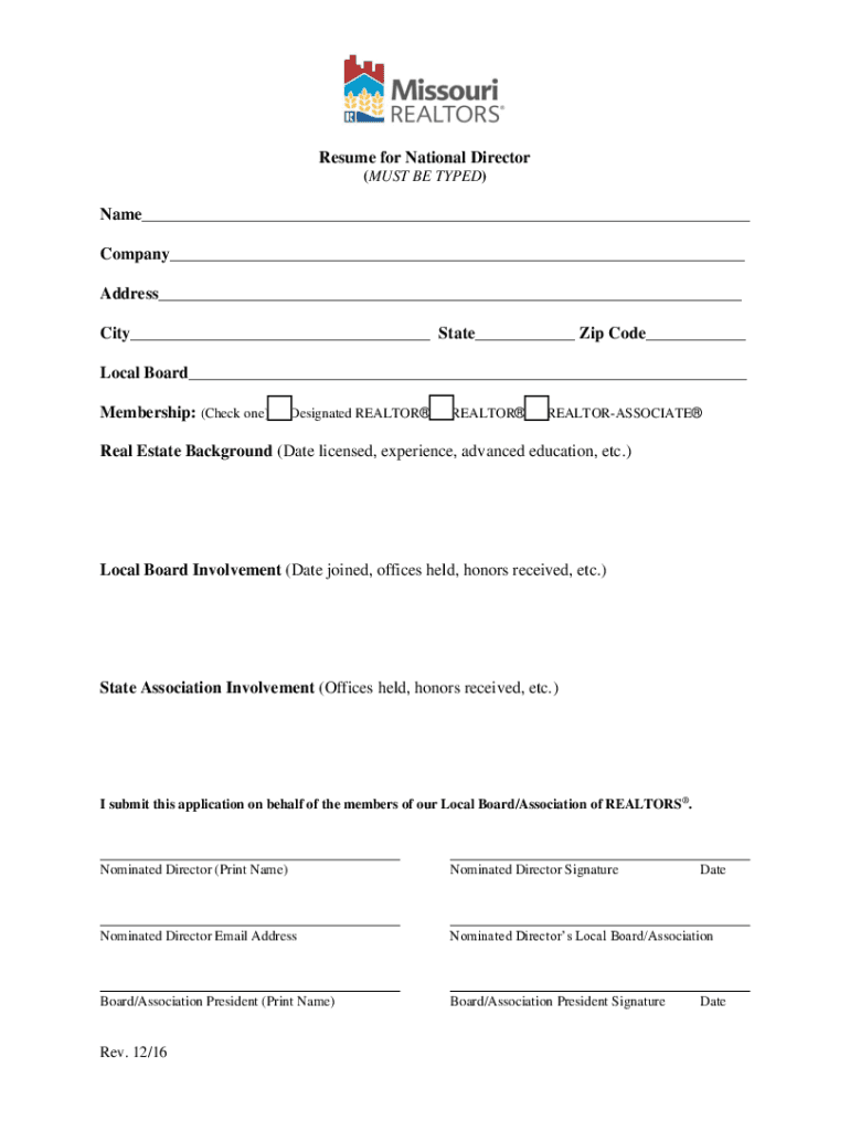 Get the free Apply for Leadership Role - Missouri REALTORS