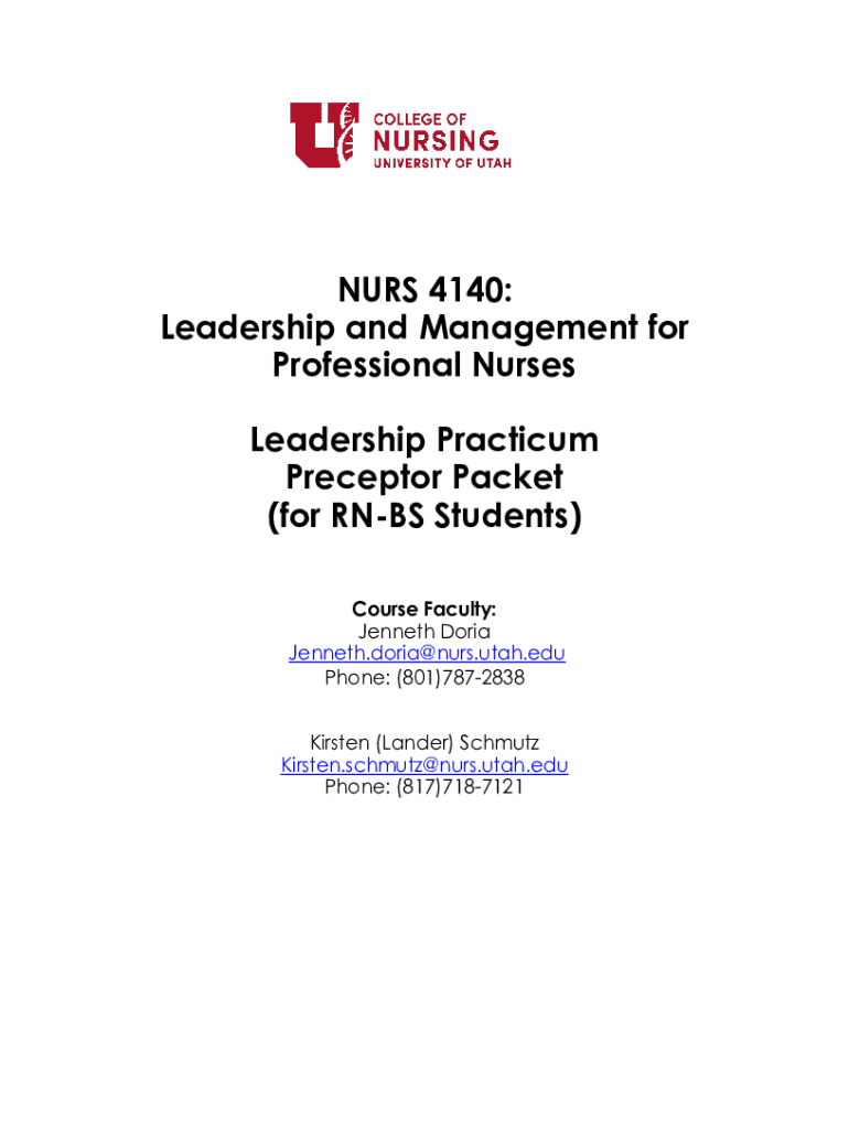NURSE 4140: Leadership and Management for Professional Nurses Leadership Practicum Preceptor Packet (for RIBS Students) Course Faculty: Kenneth Doris Jenneth.doria@nurs.utah.edu Phone: (801)7872838