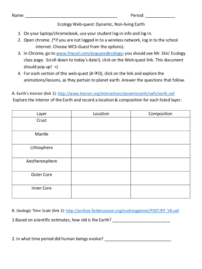 Get the free Name: Period: Ecology Web-quest: Dynamic, Non-living Earth ...