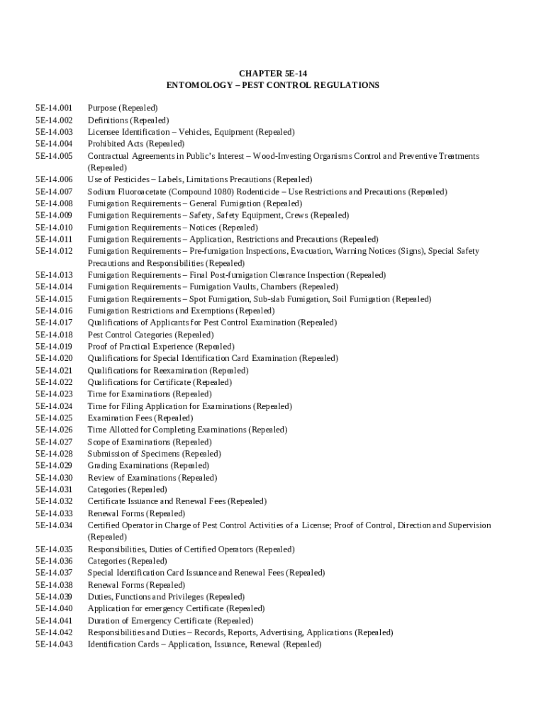 Template CHAPTER 5E-14. ENTOMOLOGY - PEST CONTROL REGULATIONS instructions