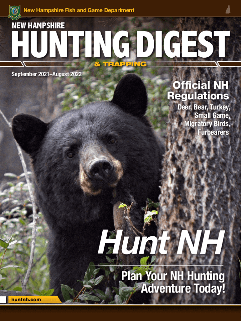 New Hampshire Fish and Game Department HAMPSHIREHUNTING DIGEST & TRAPPING September 2021August 2022Official NH Regulations Deer, Bear, Turkey, Small Game, Migratory Birds, FurbearersHunt NH Plan Your