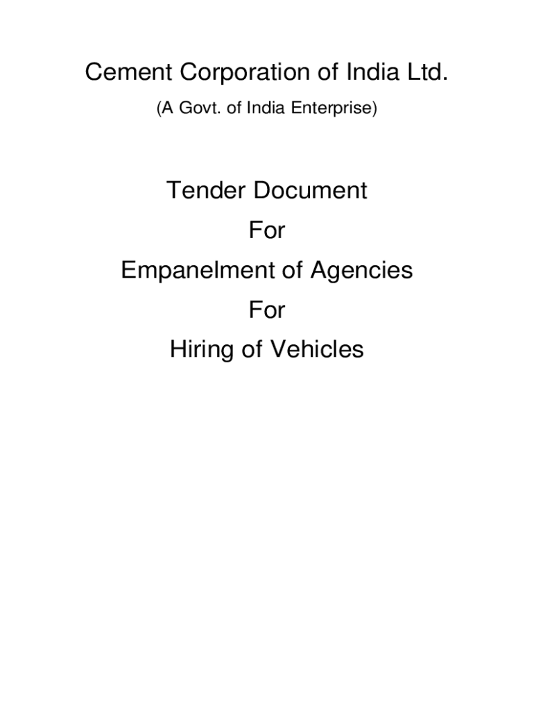 Cement Corporation of India Ltd. (A Govt. of India Enterprise)Tender Document For Embankment of Agencies For Hiring of Vehicles/s, Ref. No. 11(11)/Aden./201718 Date 27 .03.2018Tender Documents 1.