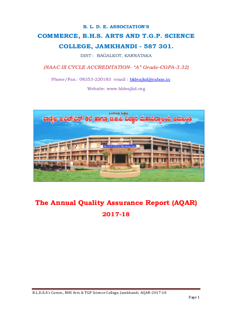 B. L. D. E. ASSOCIATION 'COMMERCE, B.H.S. ARTS AND T.G.P. SCIENCE COLLEGE, BACKHAND 587 301. DIST : BALLOT, KARNATAKA(NAACP III CYCLE ACCREDITATION A GradeCGPA3.32) Phone/Fax : 08353220183 email :